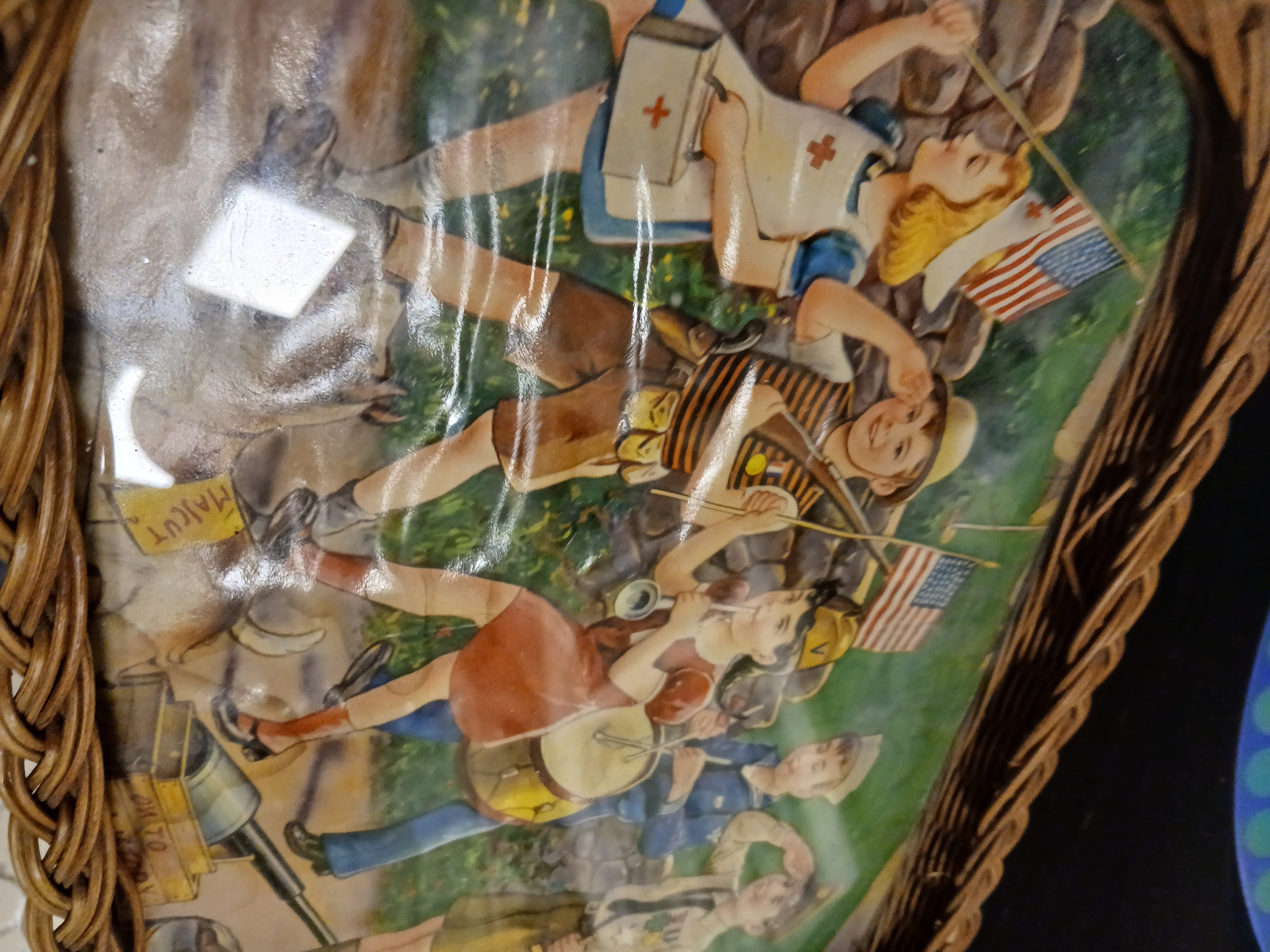 Glass is covering a picture of marching children in various uniforms, possibly representing different branches of service or youth organizations, holding flags and instruments.